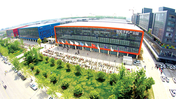鄭州航空港實驗區(qū)智能終端手機產業(yè)園A區(qū),位于實驗區(qū)華夏大道與東海路交叉口,總占地約370畝,建筑面積約61萬平方米,總投資25億元,于2014年1月13日正式開園。截止目前,已有48家智能手機及相關企業(yè)簽約入駐,2017年非蘋智能手機產能達1.96億部。